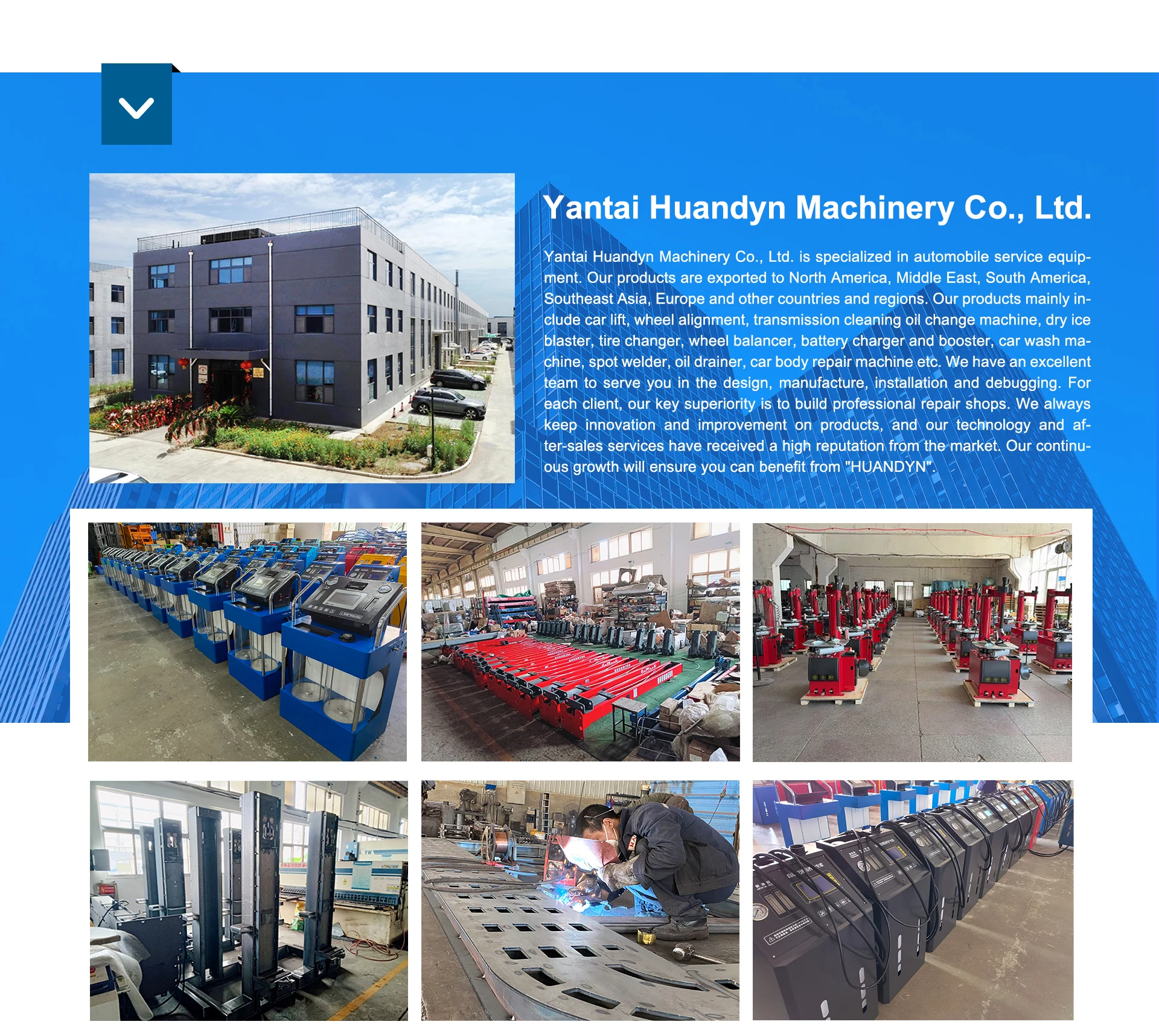Productos principales:Alineación de ruedas, máquina de cambio de aceite de transmisión automática, elevador de automóviles, máquina de chorro de hielo seco, máquina de lavado de automóviles